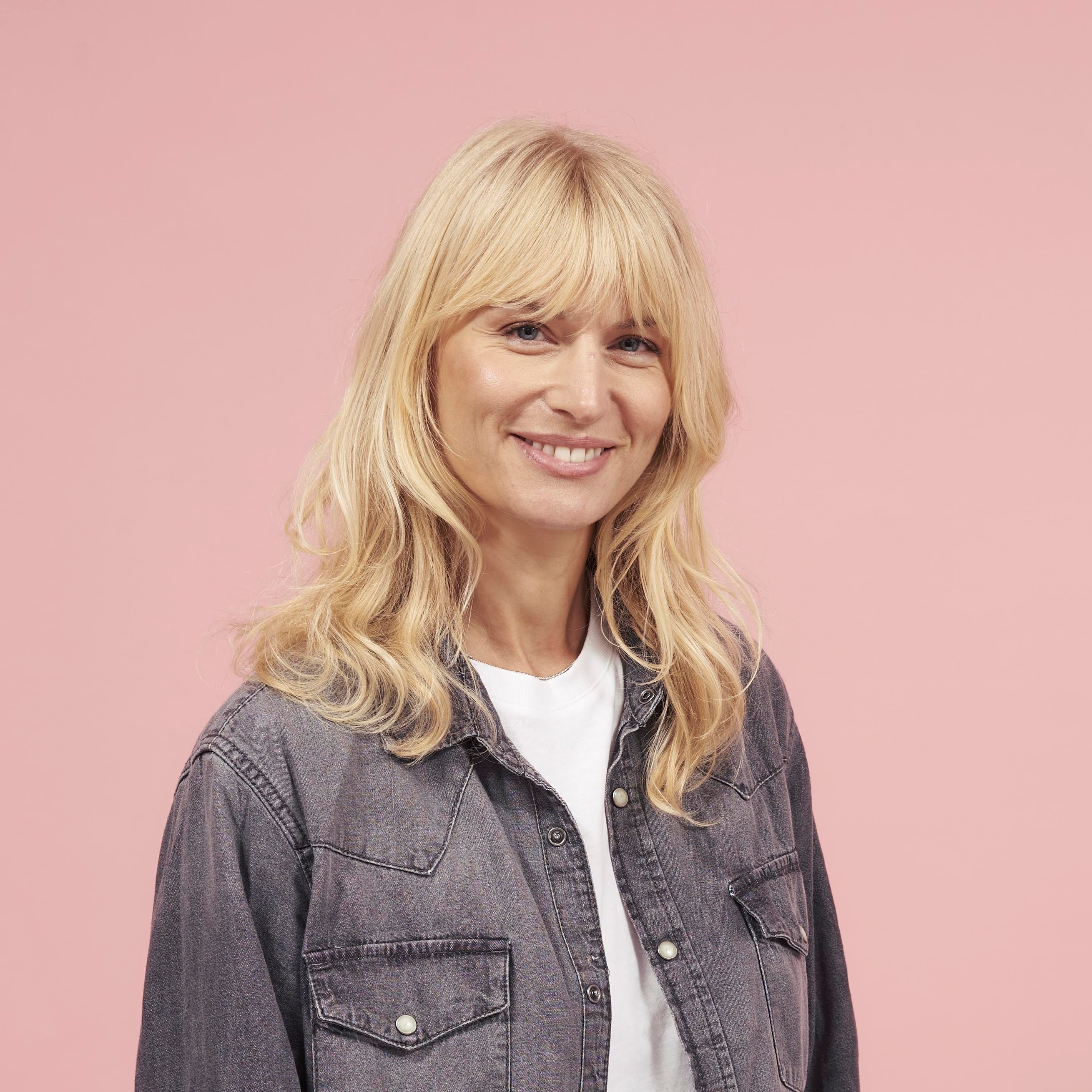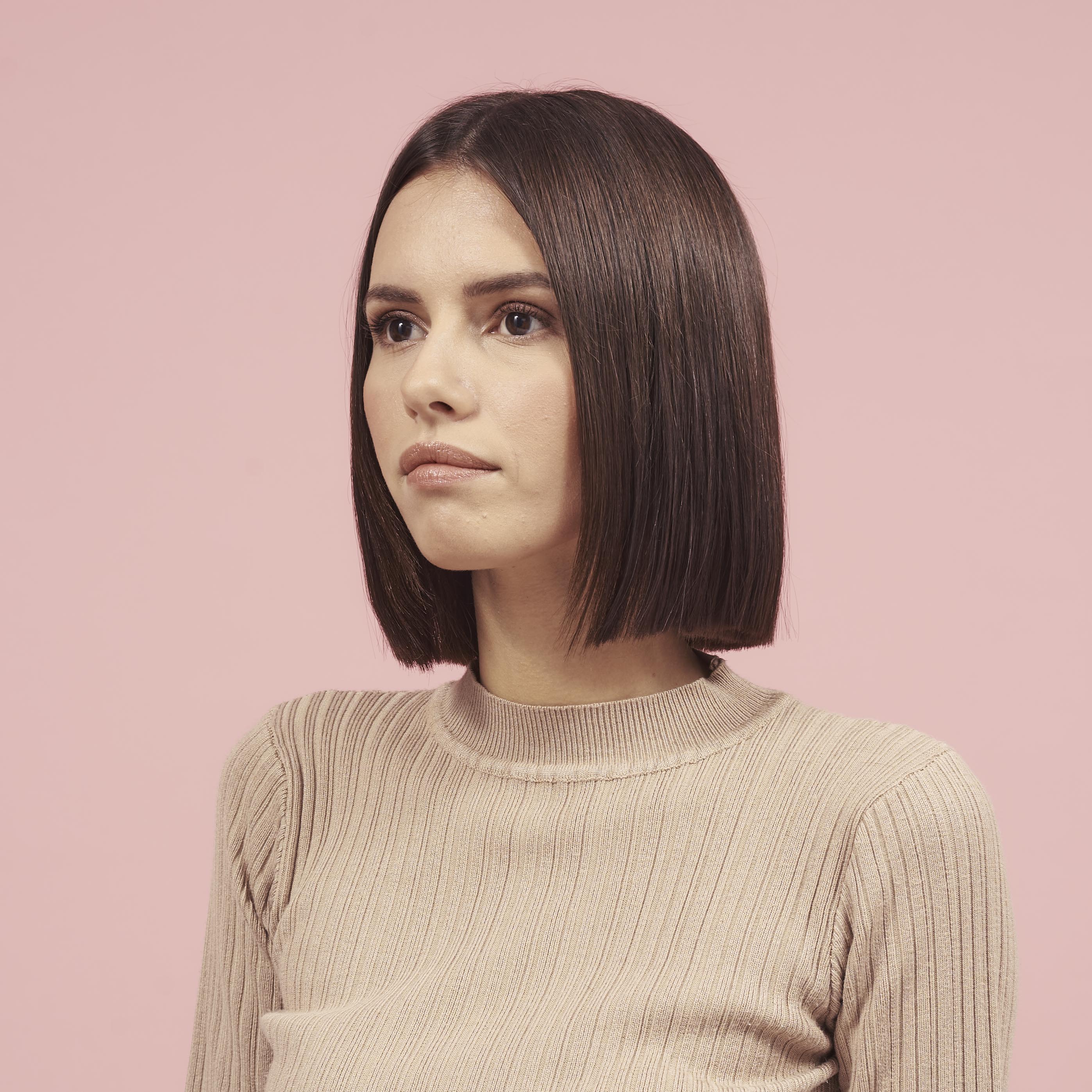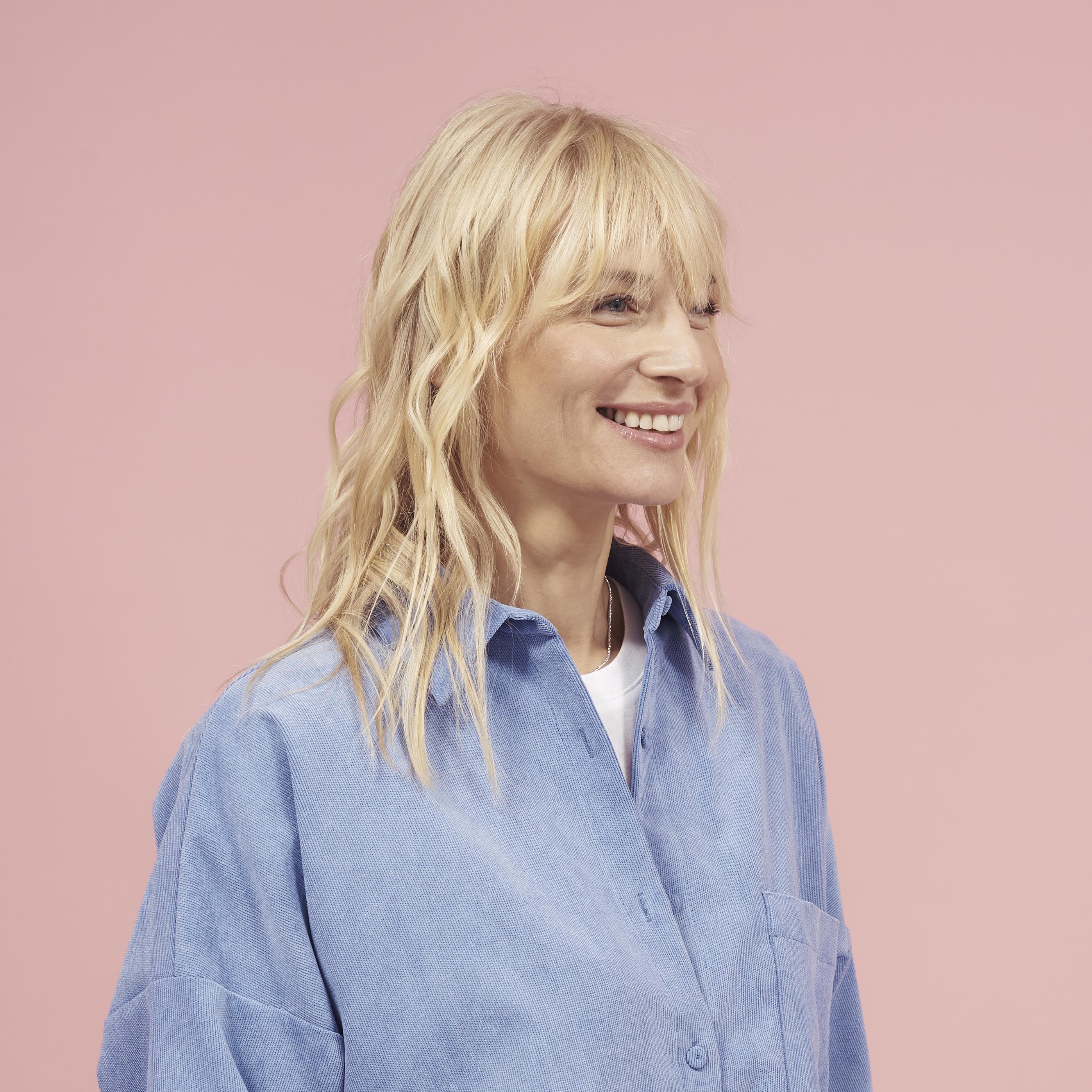 Smooth and voluminous styling at the roots with rounded ends that gives a nod to 70s hair styles