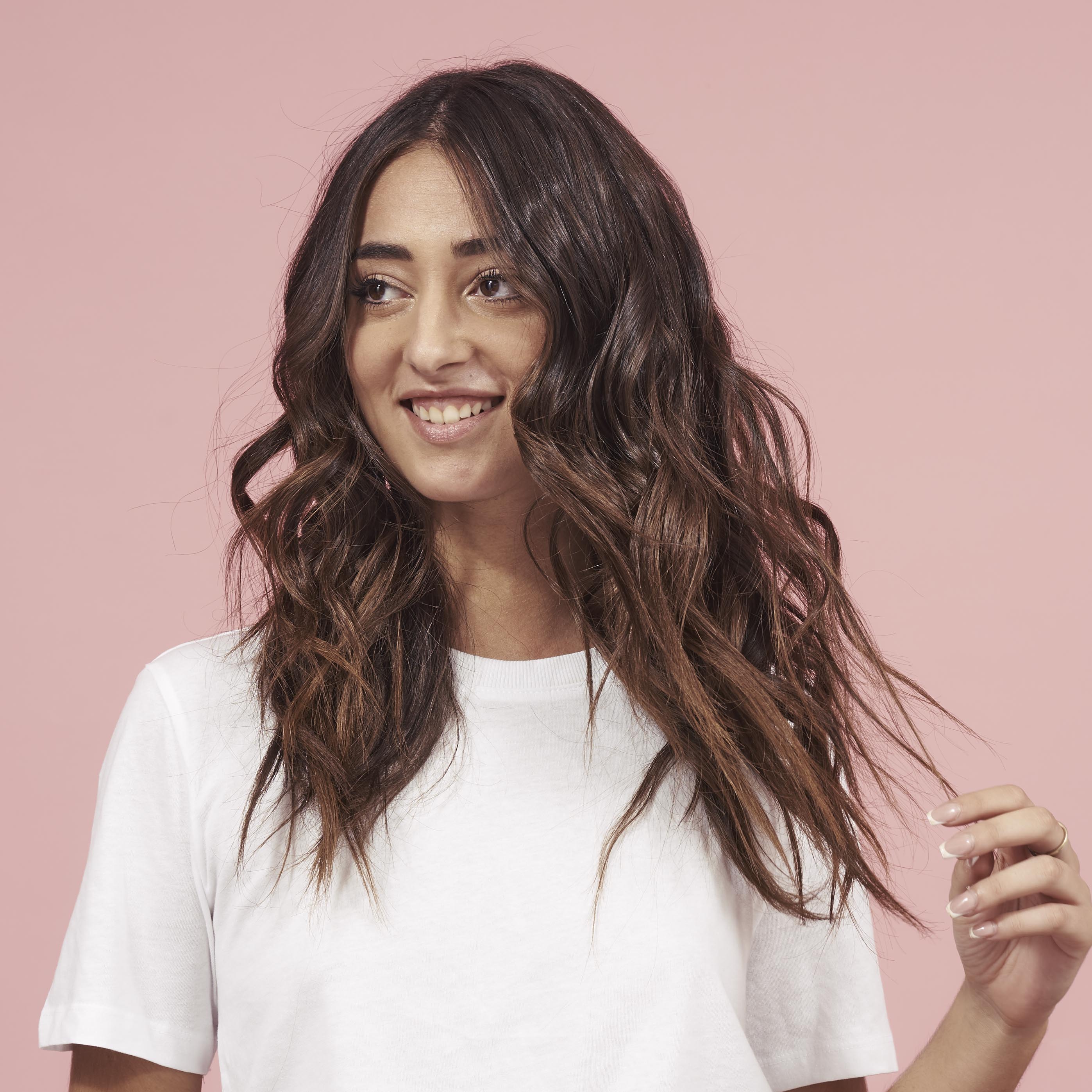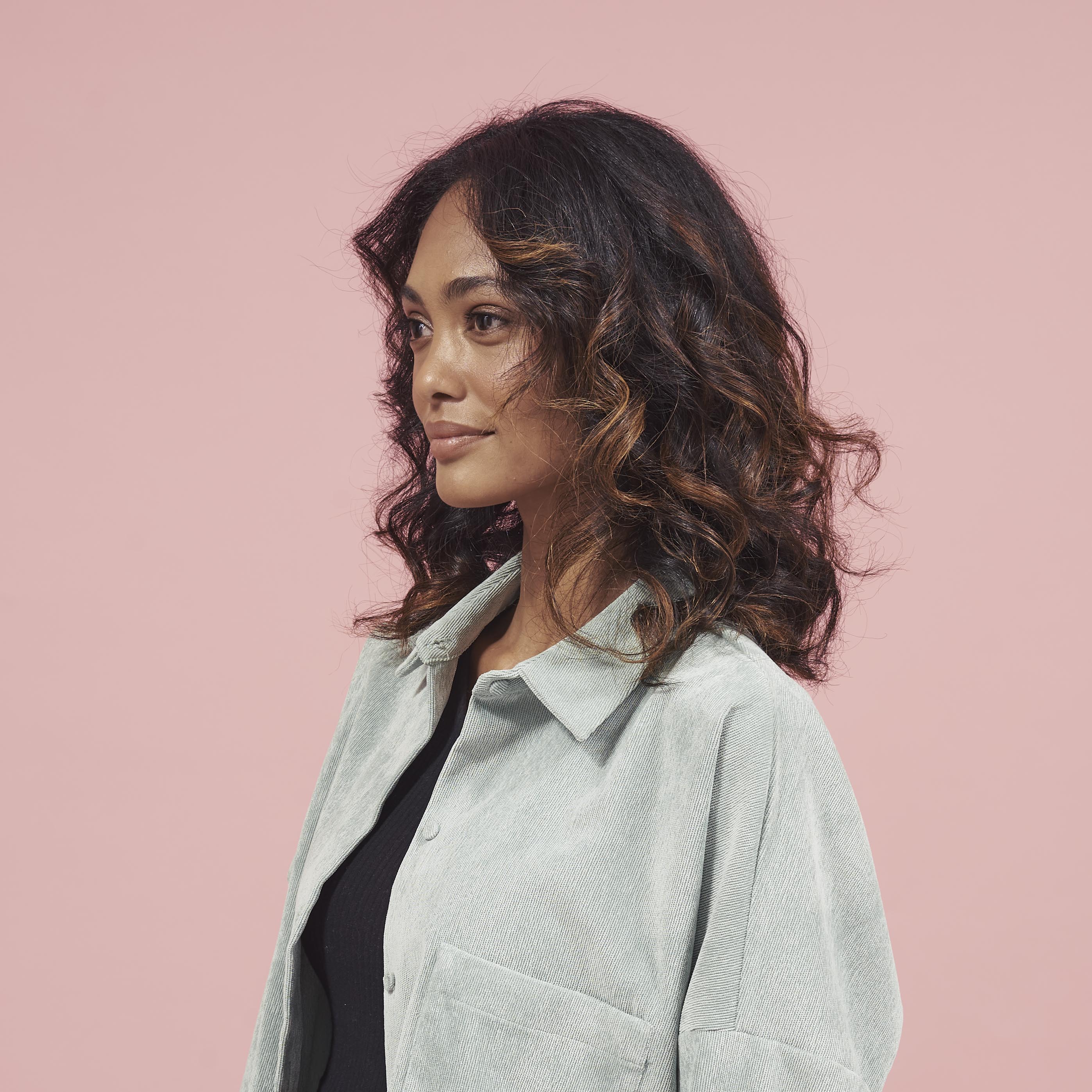Hairstyle that starts from a curly base to accentuate its shape and waves.